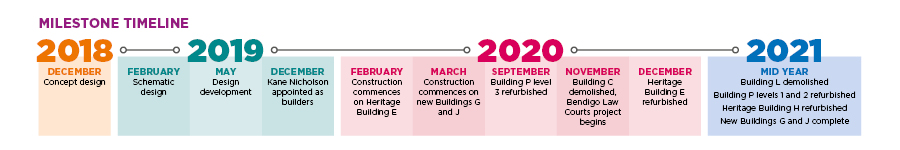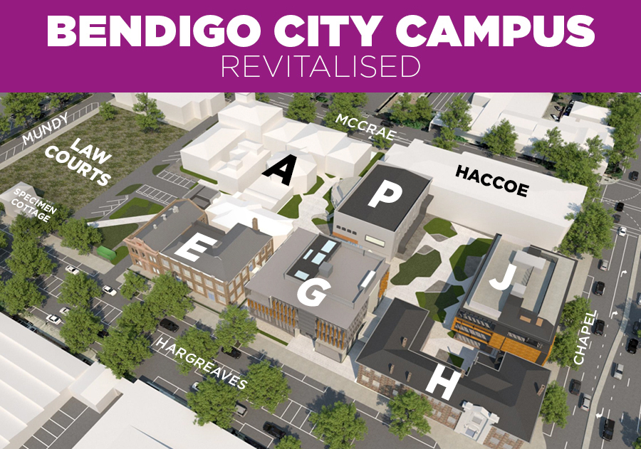 Bendigo TAFE city campus has been revitalised. The 60-million-dollar project was completed in July 2021, funded by the Victorian Government, it includes the introduction of two new buildings and the refurbishment of two existing heritage buildings, which have created a vibrant and modern learning and interactive space for students, staff and the community.